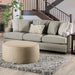 Imagine your space elevated with a centerpiece like this one. This living room group features sloped armrests for relaxed seating, while the removable box cushions with matching welt trim make maintenance an easy task, especially with its stain-resistant fabric. Beautiful lines and patterns on the matching chair, ottoman, and accent pillows bring splashes of gold to the neutral gray base color. Fully upholstered, this piece is great for any transitional home wanting a substantial update in looks and comfort.